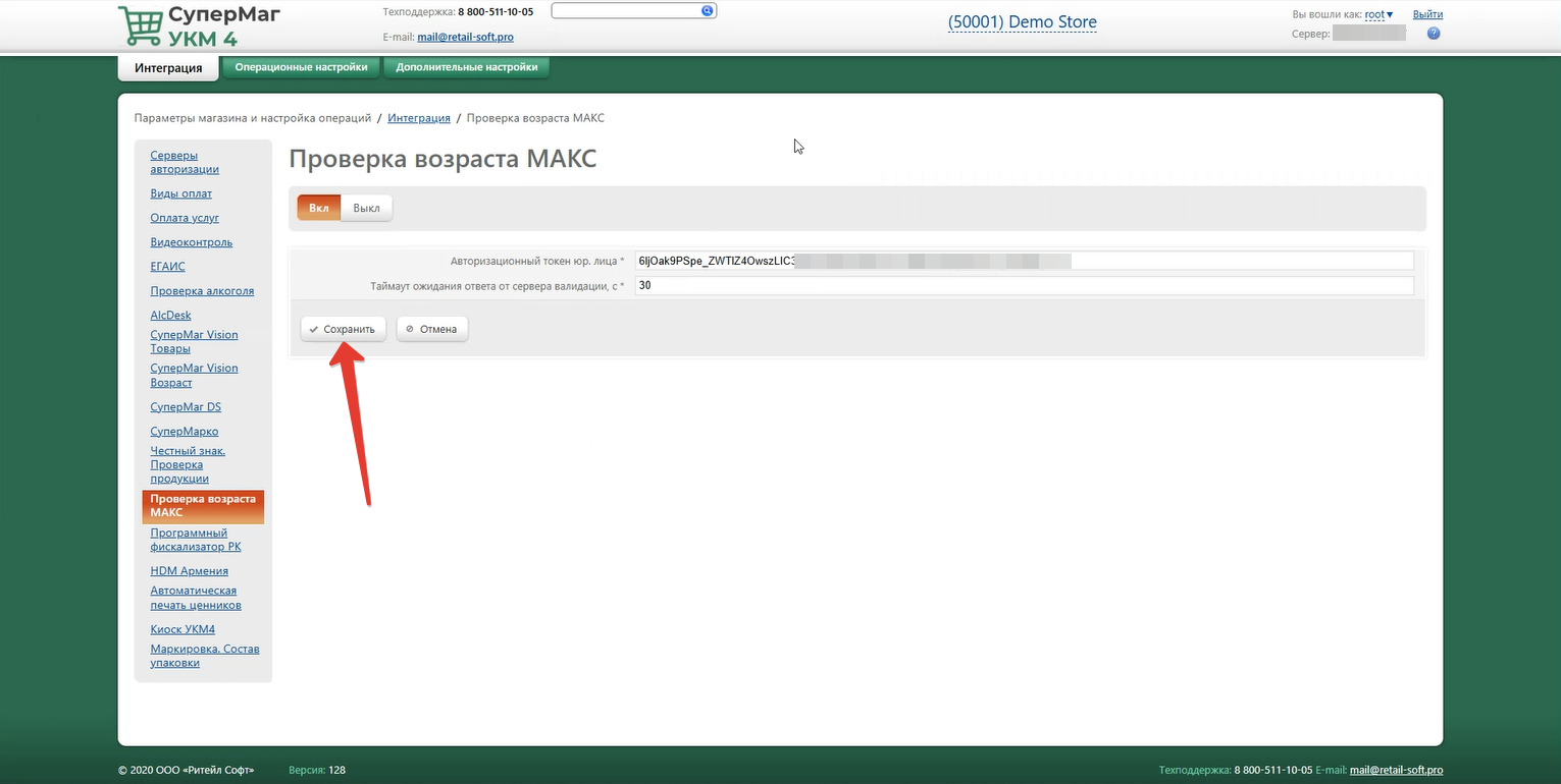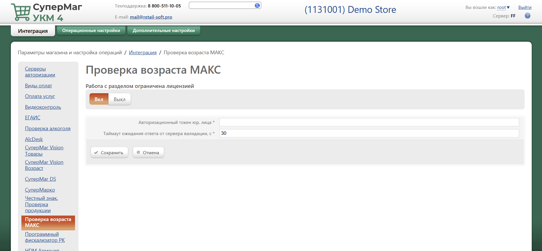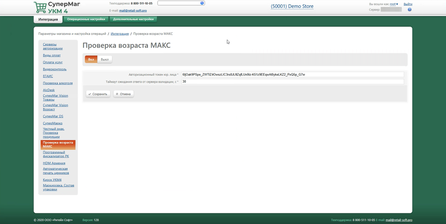 Параметры магазина и настройка операций