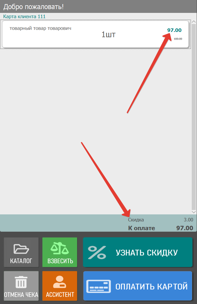 Регистрация карты покупателя и предварительный расчет скидок
