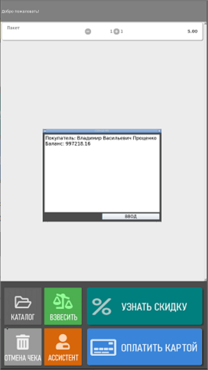Регистрация карты покупателя и предварительный расчет скидок
