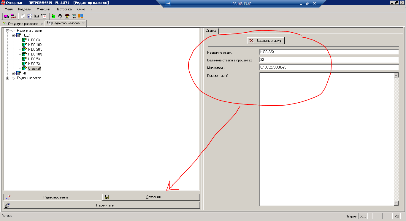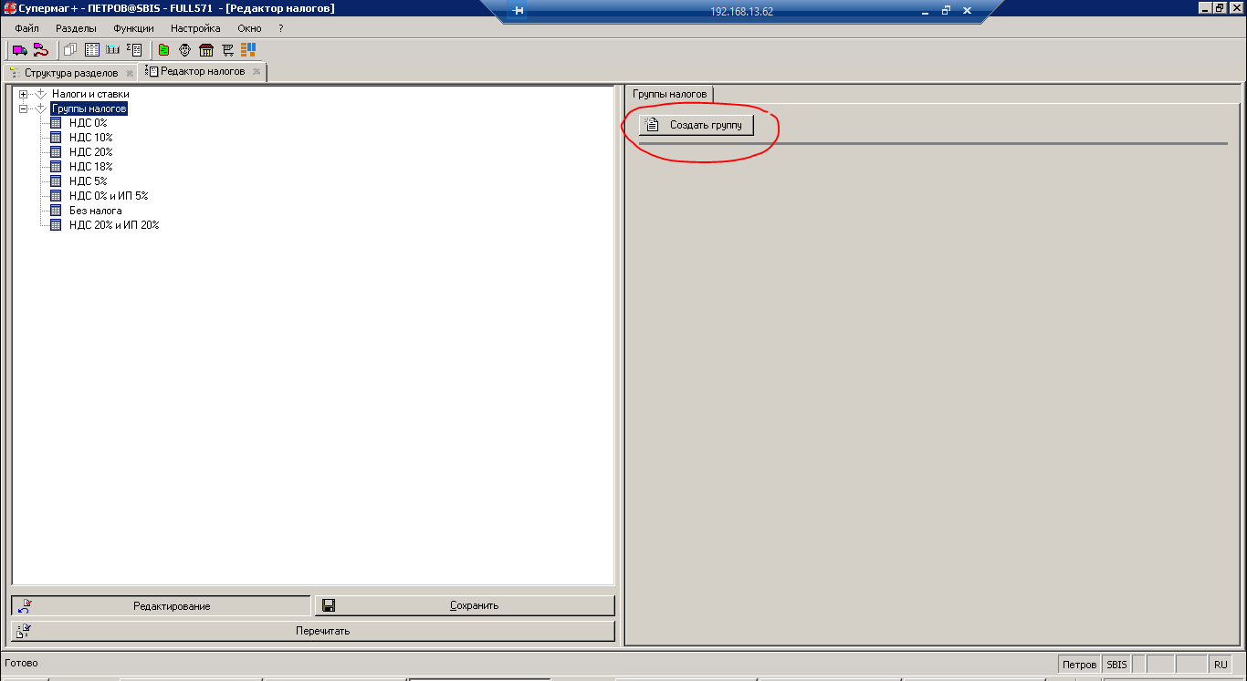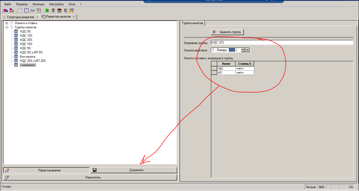 Перейти в раздел "Налоги" - "Редактор налогов".