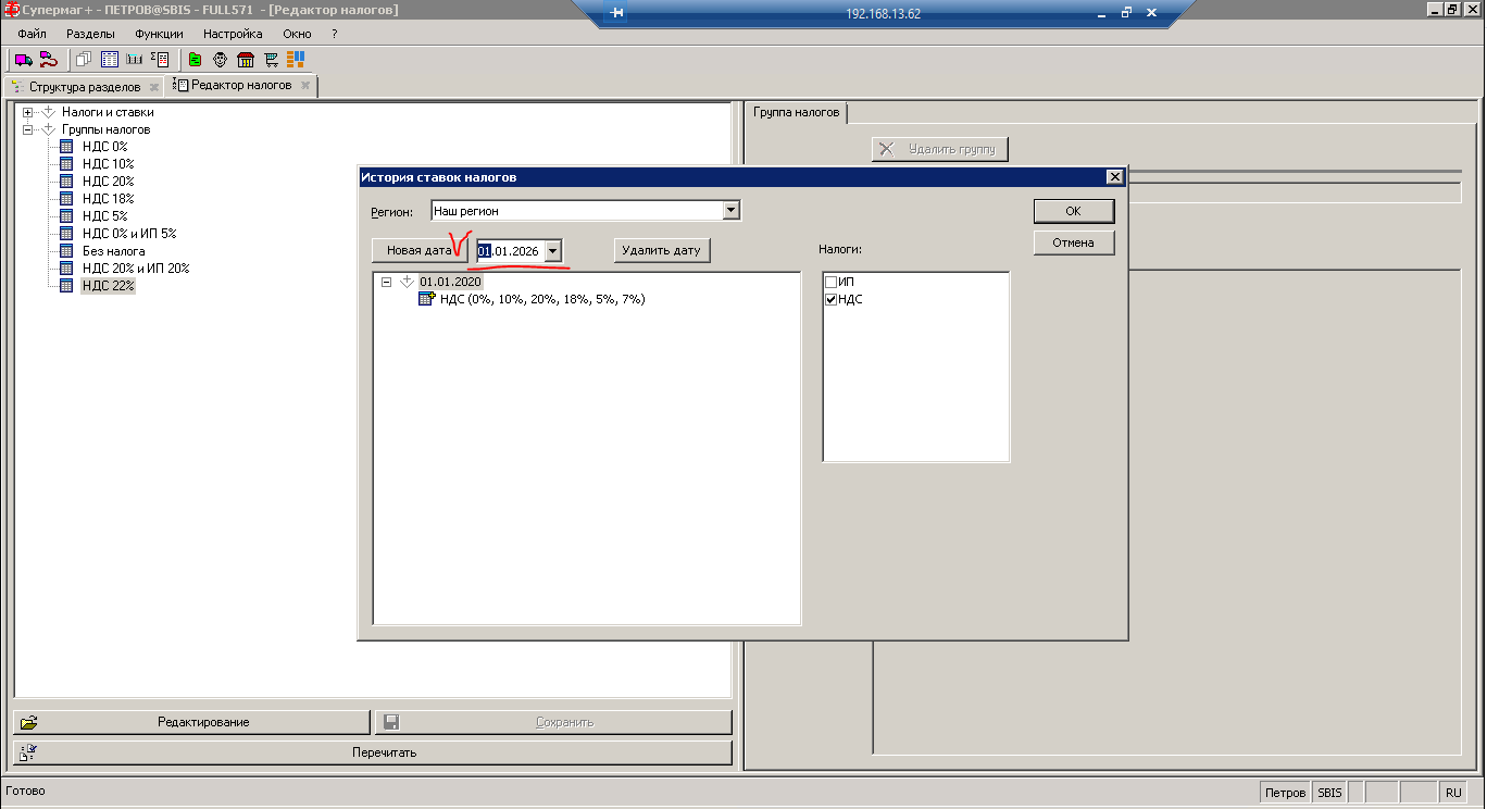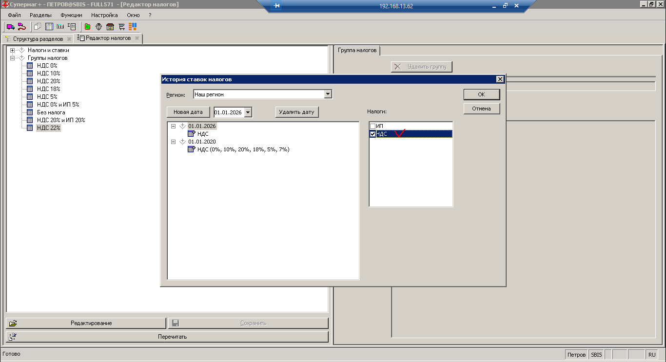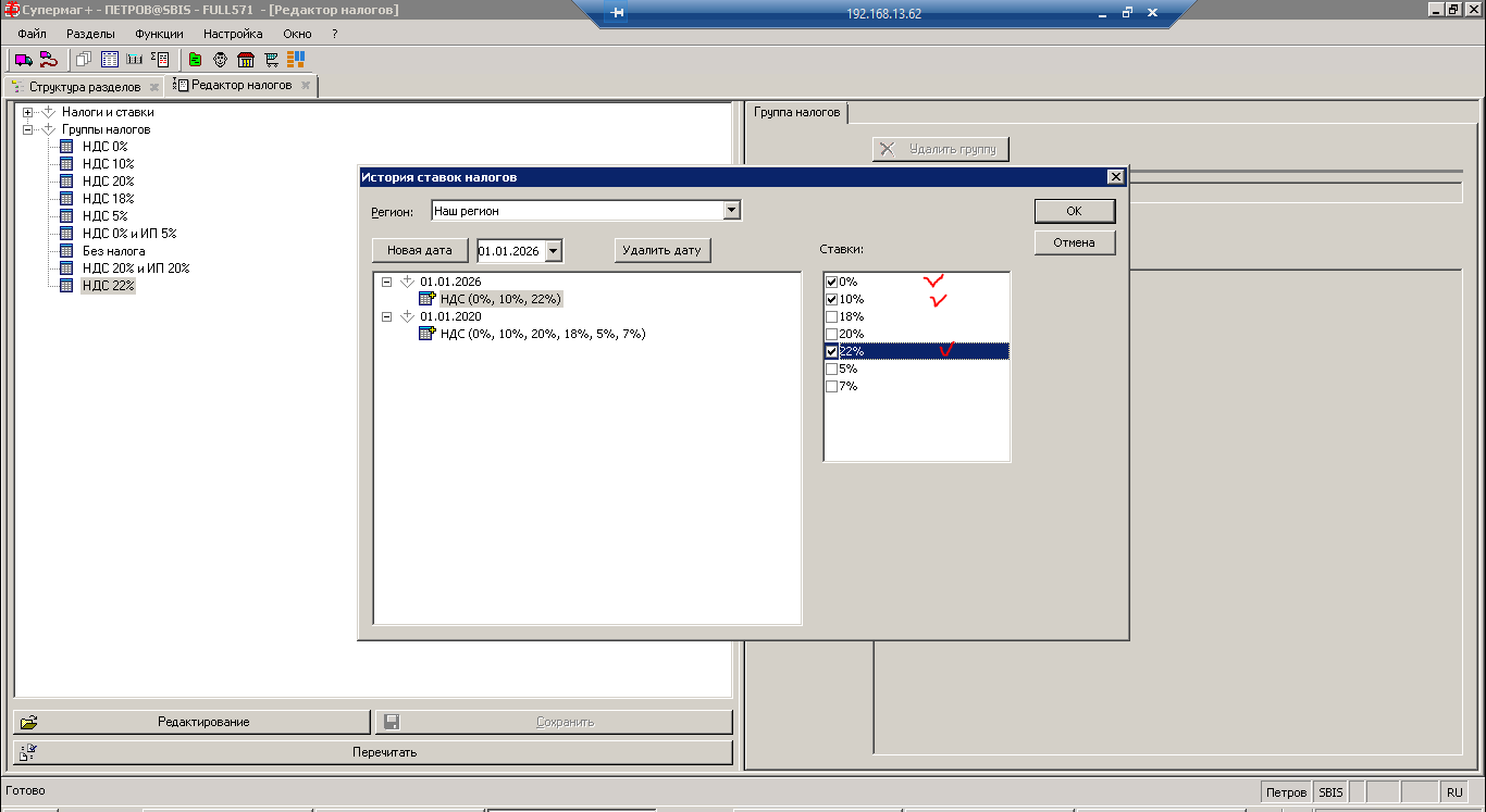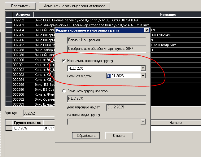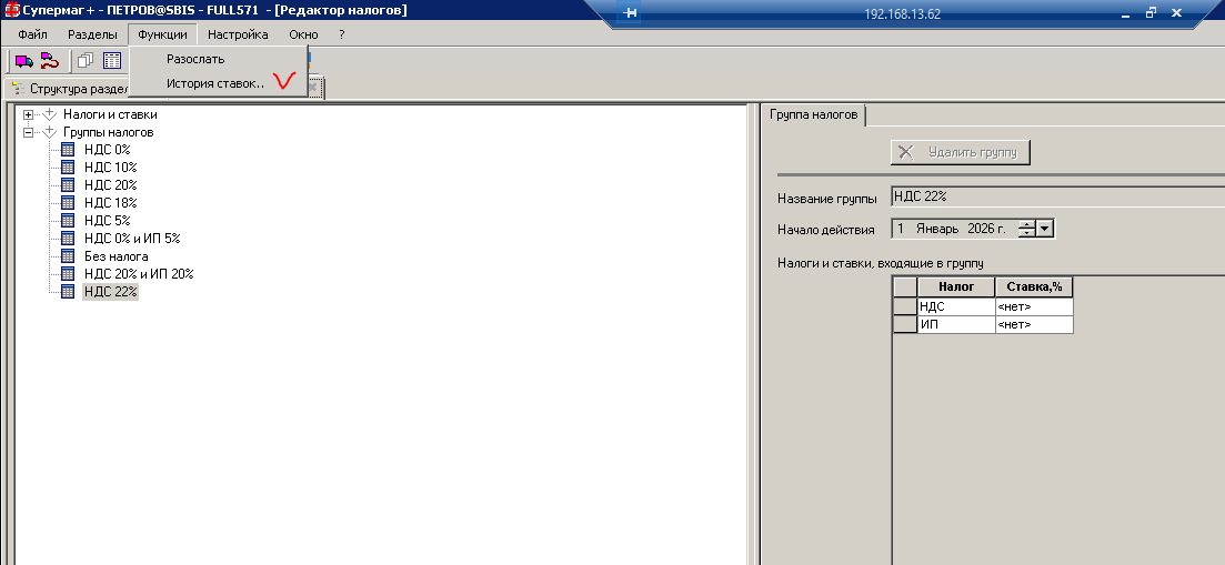 Теперь начиная с 01.01.2026 в системе автоматически завершится действие налоговой группы 20%, и начнется действия налоговой группы 22%.