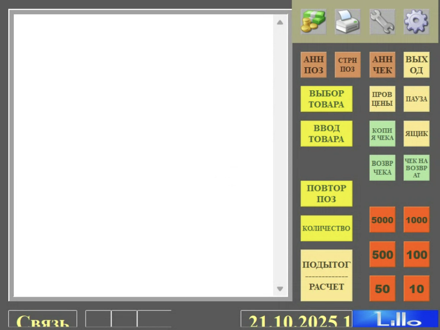 Стандартным и привычным многим видом интерфейса touch-кассы Lillo является следующий: