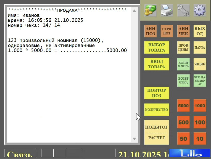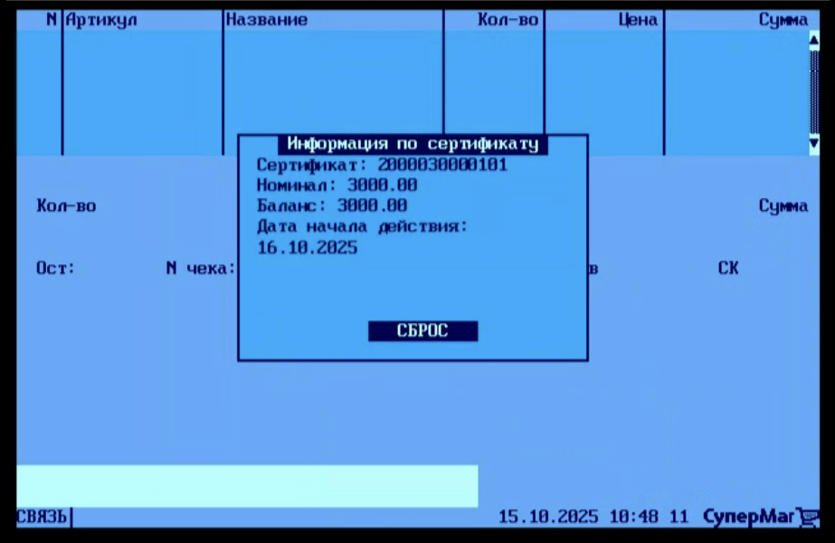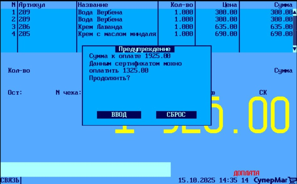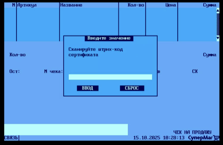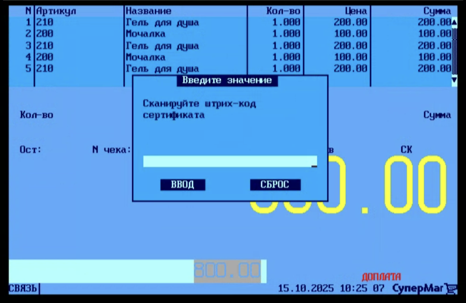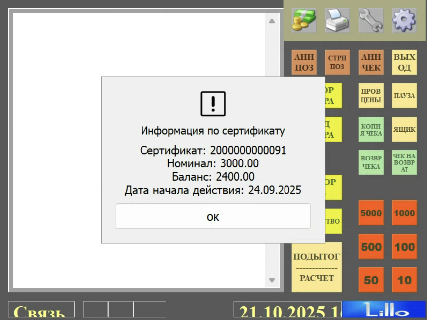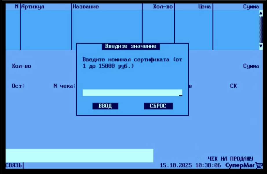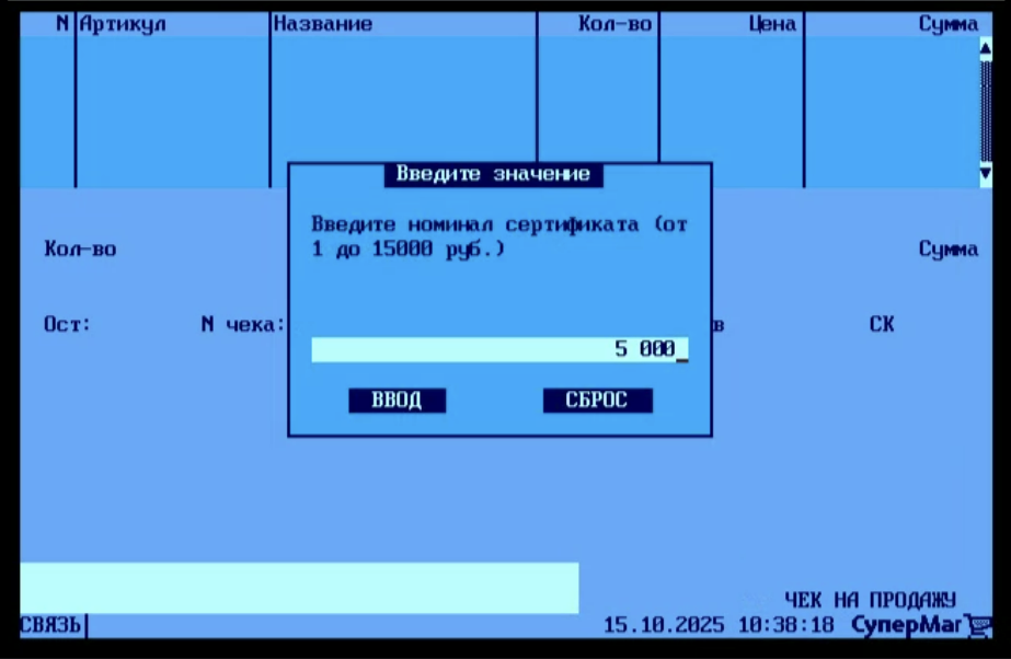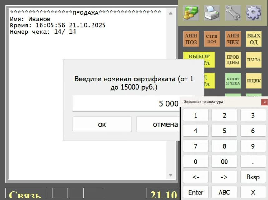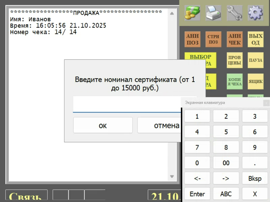 Процесс продажи сертификатов с произвольным номиналом выглядит на кассах УКМ 4 следующим образом: