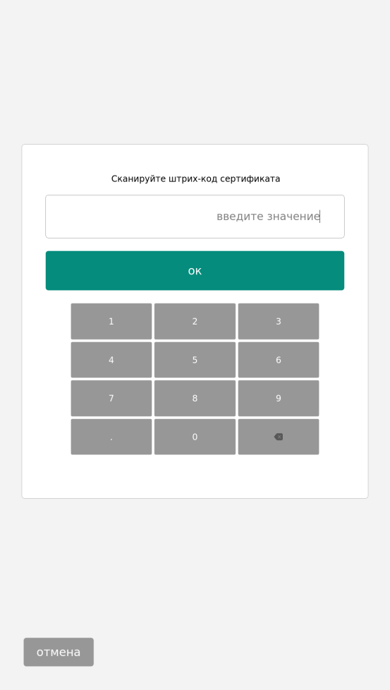 | На телефон покупателя будет отправлен 4-значный проверочный код, который необходимо сообщить кассиру. Касса запросит ввести данный код: | |