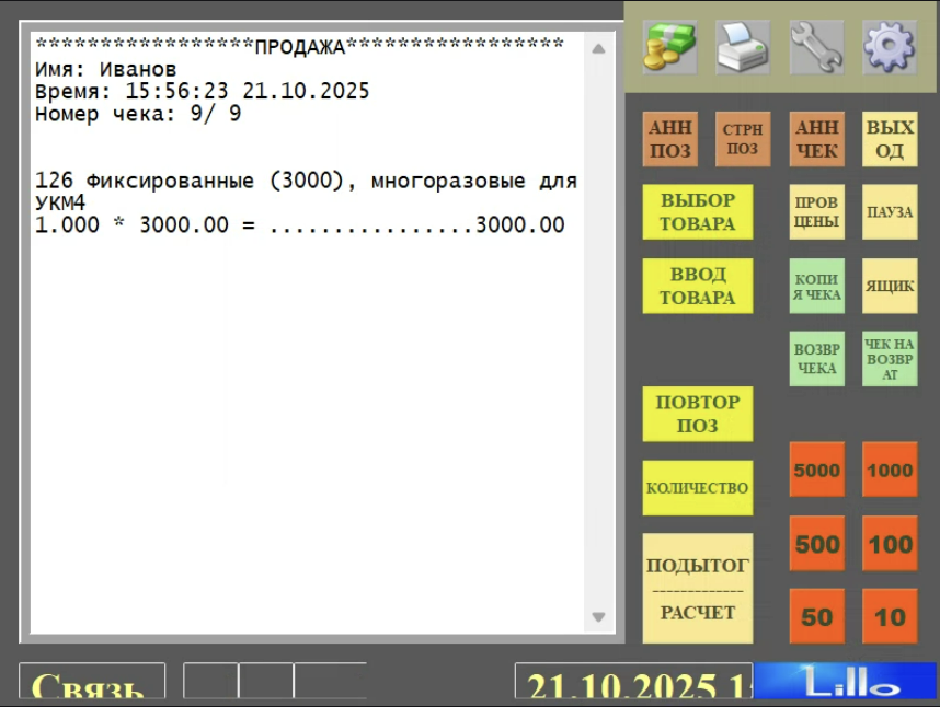 На touch-кассе Lillo, вызов функции осуществляется из интерфейса самой кассы: