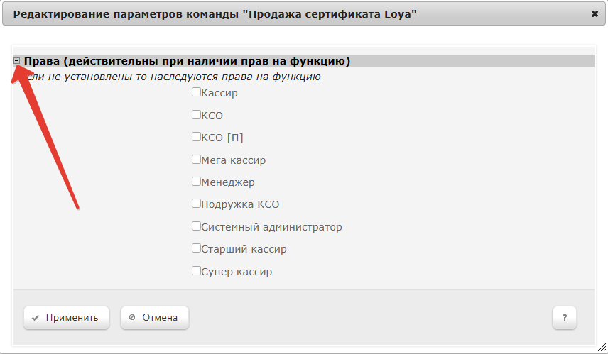 можно настроить права на пользование добавляемой функцией, после чего необходимо нажать кнопку Применить:
