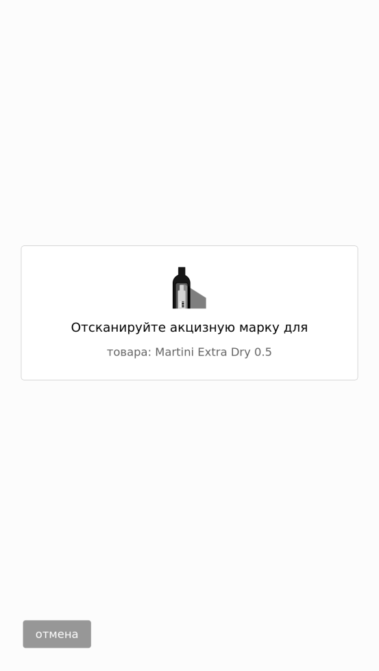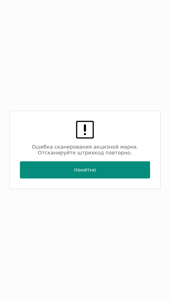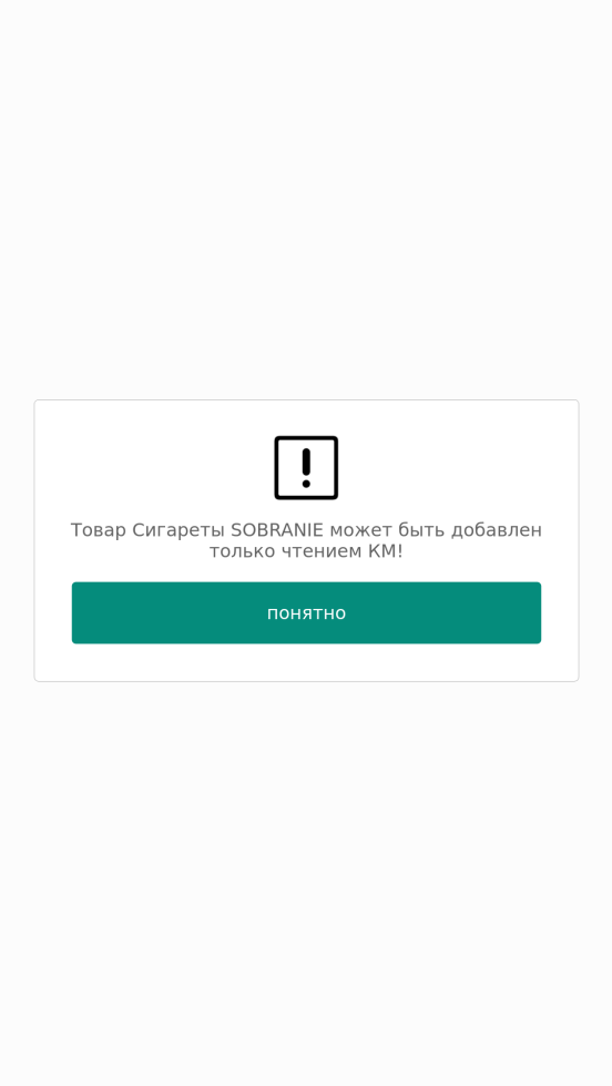 Добавить в чек алкогольный/маркированный товар, не считав его акцизную/контрольную марку, невозможно. При считывании знаков на изделии, отличных от маркировки системы "Честный знак", покупатель получит следующие сообщения: | ||