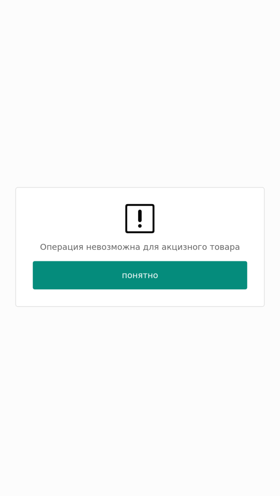 Так как каждый акцизный/маркированный товар является уникальным, изменить его количество в чеке вручную невозможно. При попытке это сделать, покупатель получит следующее сообщение: | ||