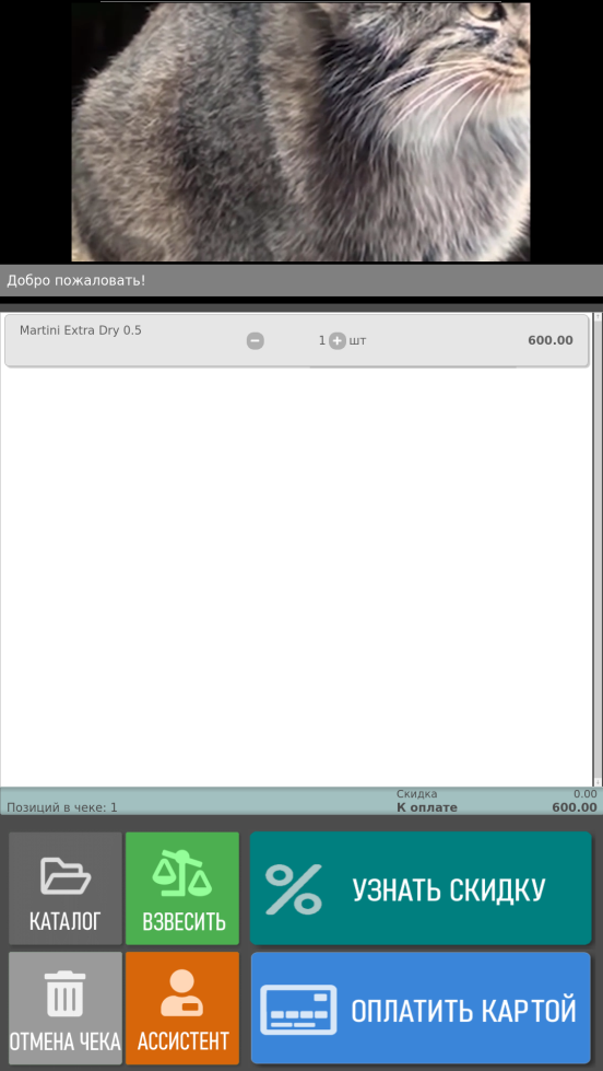 Как только покупатель отсканирует акциз/КиЗ товара, позиция автоматически добавится в чек (если на продажу данного товара не установлено никаких ограничений и – для алкогольного товара – окно ограничения по возрасту уже валидировано покупателем): | ||