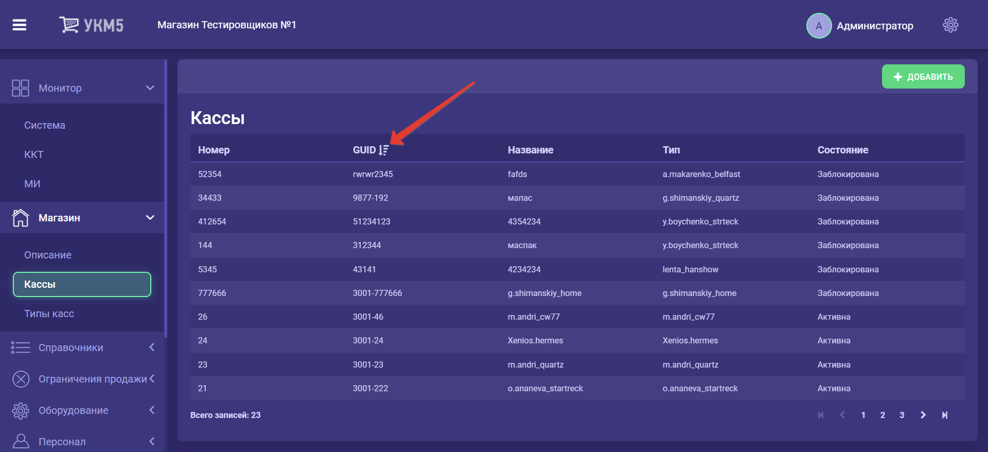 - GUID – уникальный номер кассы во всей кассовой системе. Выбирается пользователем произвольно и вводится при создании записи о кассе. Этот код вводится при инсталляции кассы в магазине.