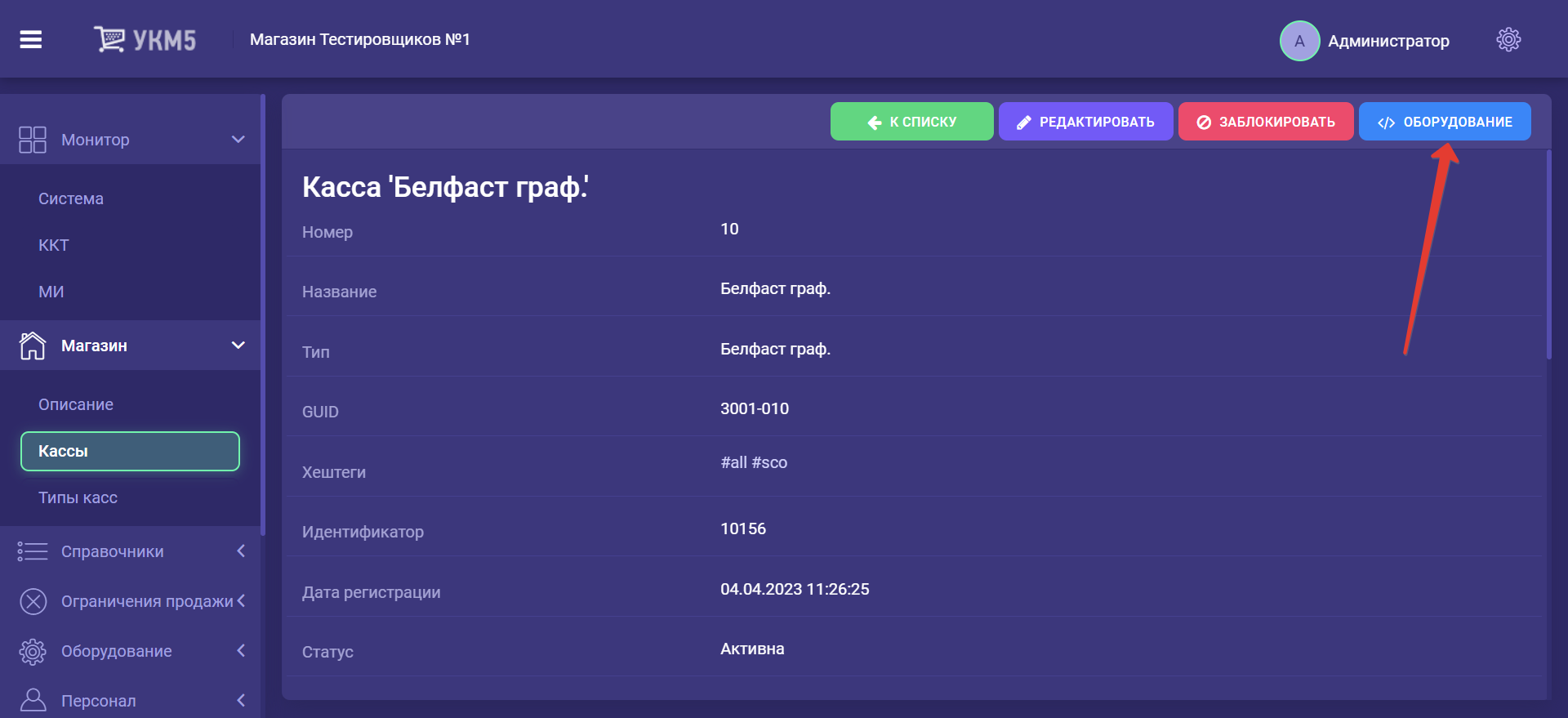 Здесь же можно изменить статус кассы на значение Заблокирована или наоборот – Активна: