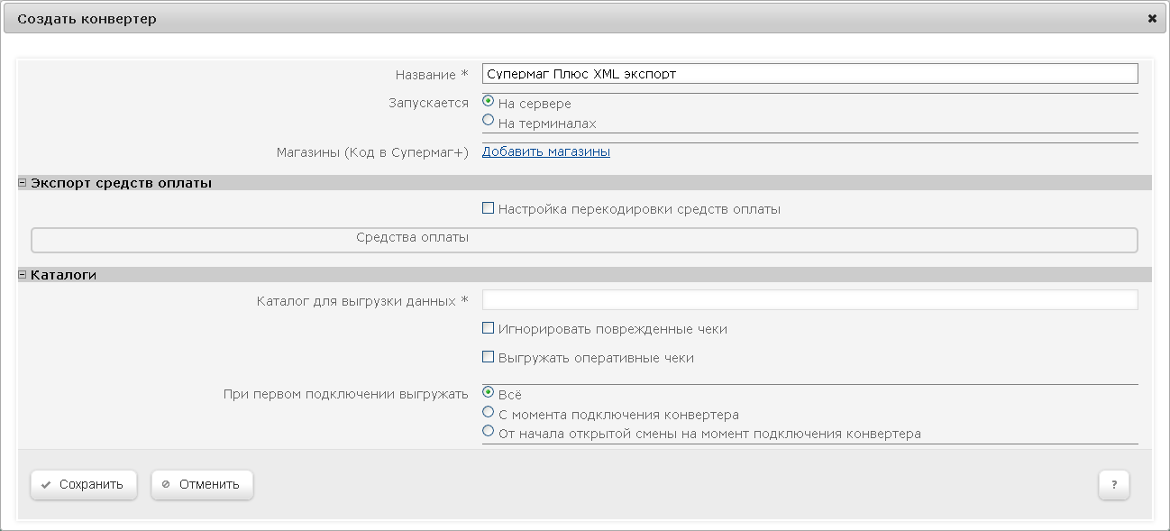 Примечание. Несмотря на то что в интерфейсе УКМ 4 данные XML-конвертеры носят название Супермаг Плюс, их можно использовать не только для интеграции УКМ 4 с продуктом СуперМаг Плюс компании Сервис плюс, но и с любыми внешними системами. Передача данных из внешней системы в УКМ 4 и из УКМ 4 во внешнюю систему осуществляется через раздельные каталоги. Набор каталогов един для всех магазинов, зарегистрированных на одном сервере. В одном файле формата XML передается только один тип данных. Конвертер непрерывно дорабатывается для поддержки передачи новых типов данных по запросам пользователей, однако, уже доступные теги и свойства не удаляются.
