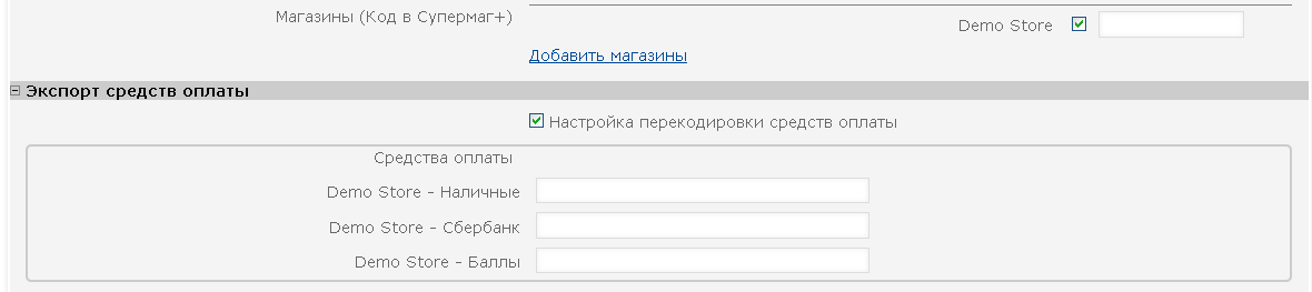 - выгружать или не выгружать: скидки, продавцов и отделы (если не выгружать отделы, то справочник отделов и привязка товаров к отделам не будут выгружены).